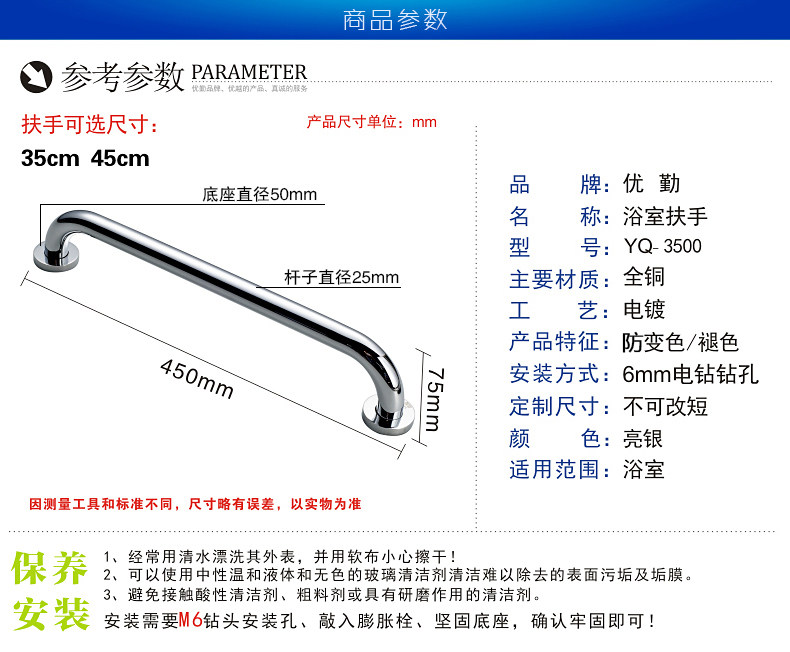 优勤卫浴全铜扶手浴缸扶手3500