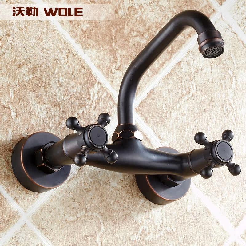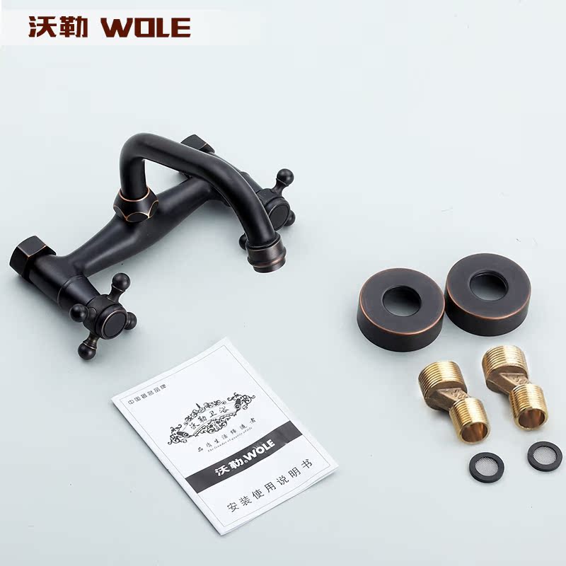 沃勒黑色仿古全铜入墙式面盆H-8809