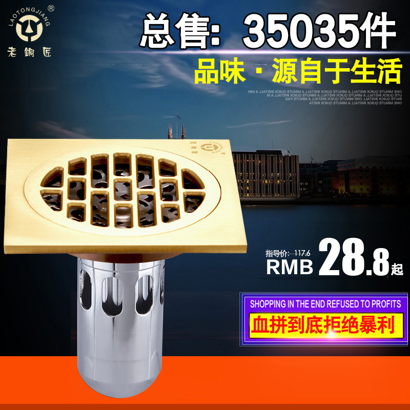 老铜匠加厚全铜防臭地漏GD10115