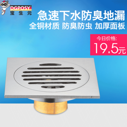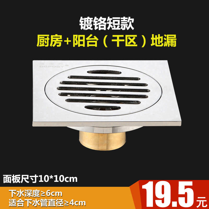 德国dgposy全铜防臭地漏短款镀铬地漏