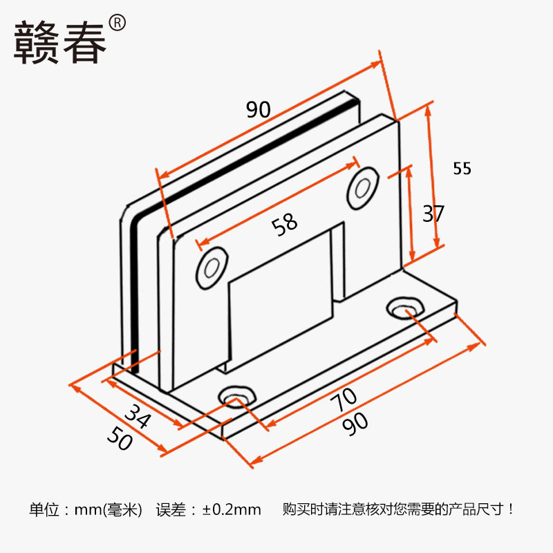 赣春淋浴房合页玻璃夹90度不锈钢合页
