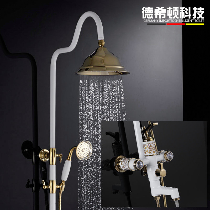 德希顿欧式全铜金色象牙白花洒D-DXDON6005