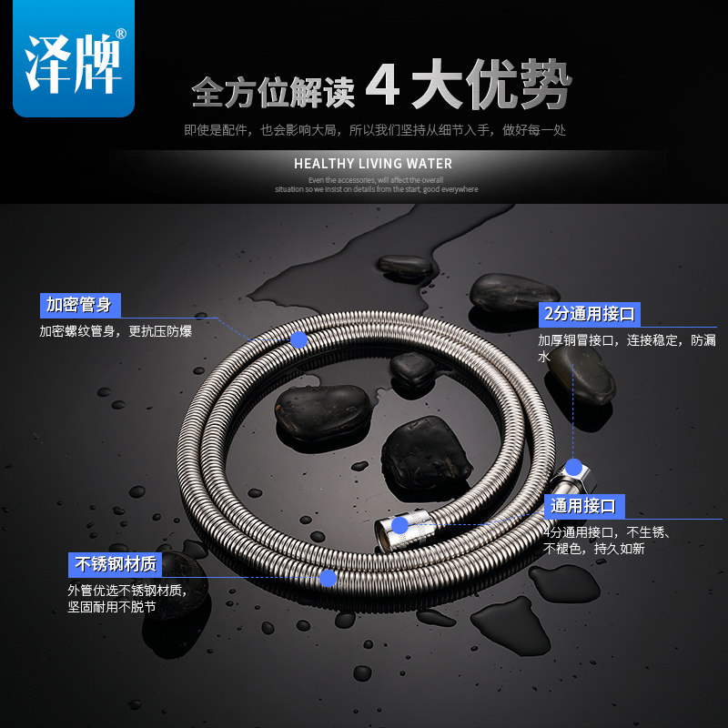 泽牌不锈钢防爆管1.5米长淋浴花洒喷头
