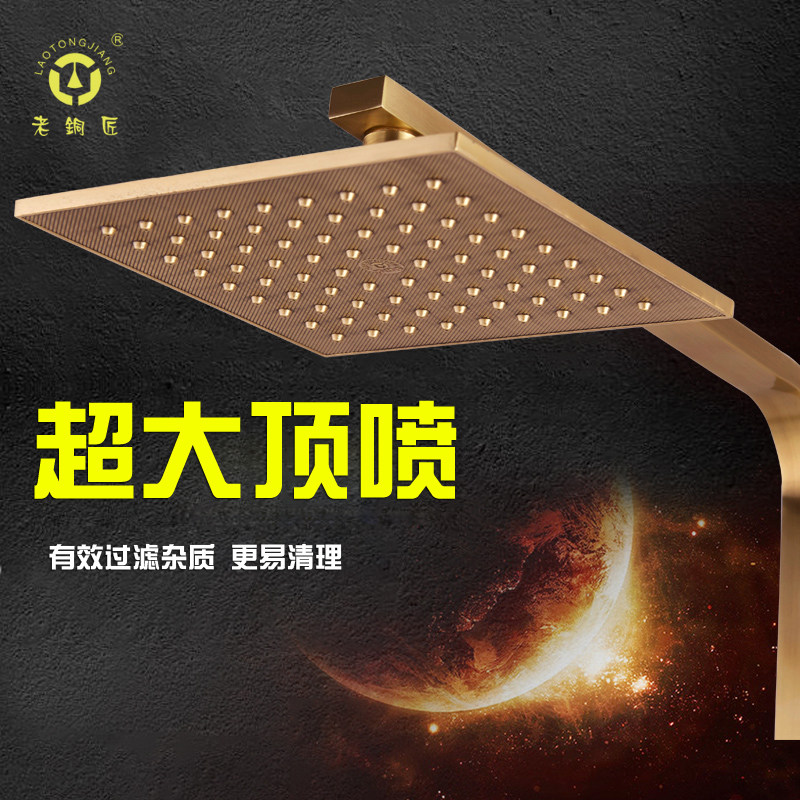 老铜匠欧式全铜增压方形花洒lt10134