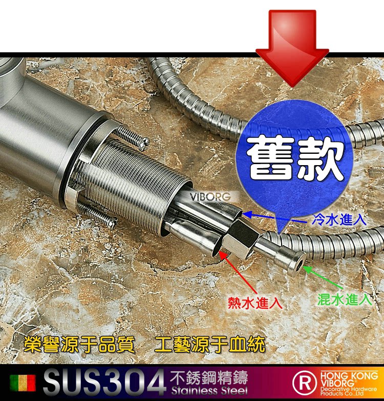 香港域堡无铅304不锈钢抽拉花洒ksb020