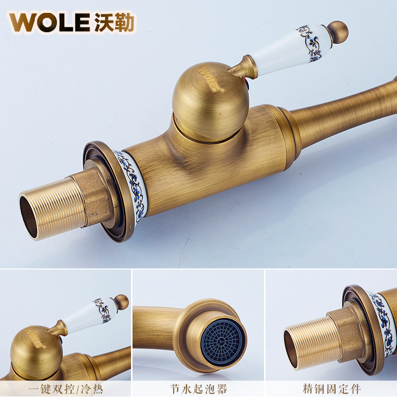 沃勒仿古全铜面盆水龙头F1006578