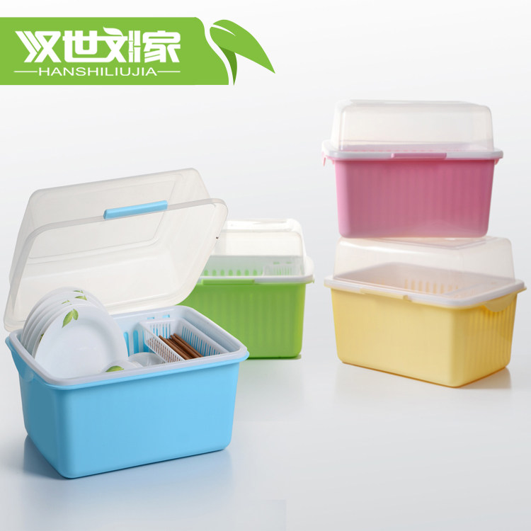 汉世刘家双层塑料带盖置物架HSLJ-071