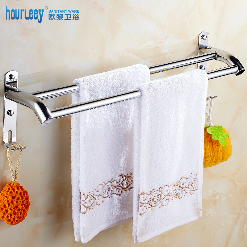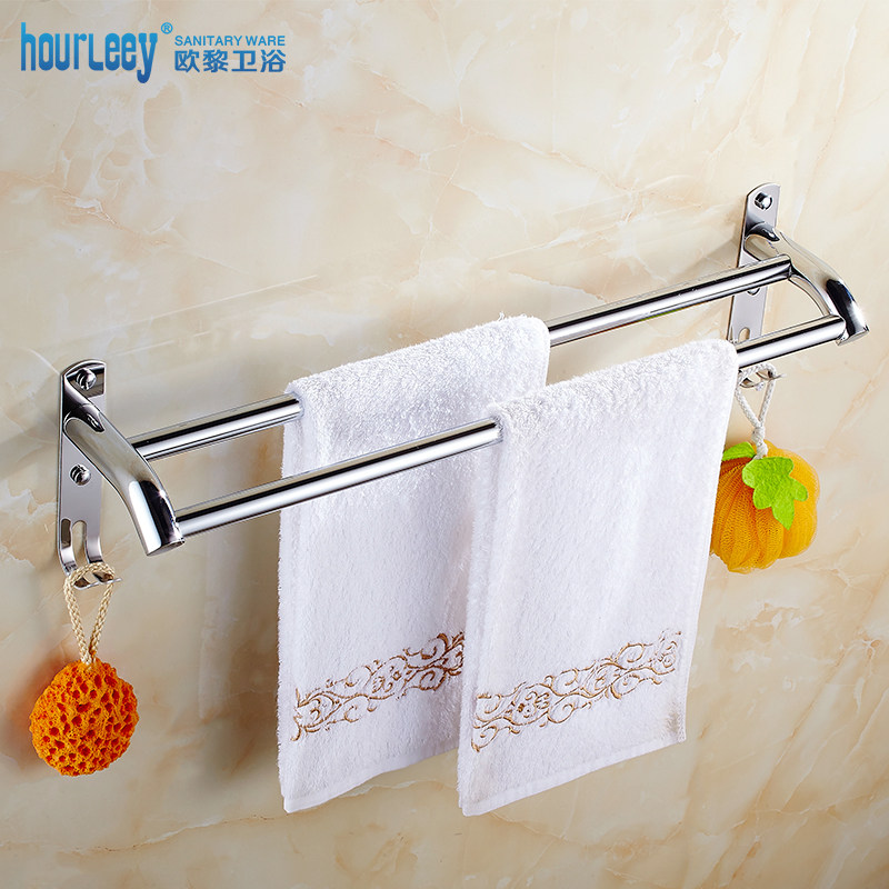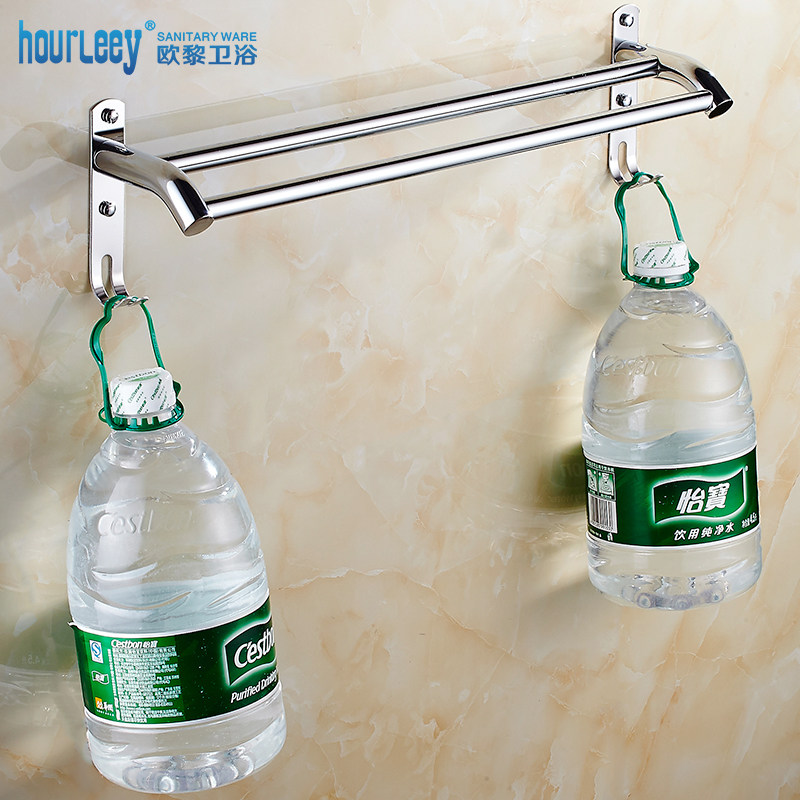 欧黎毛巾杆双杆不锈钢带钩双杆
