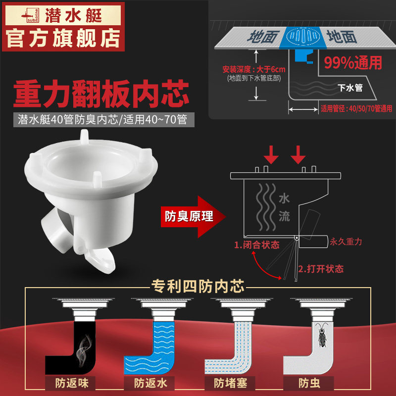 潜水艇地漏防臭地漏TF40-10B