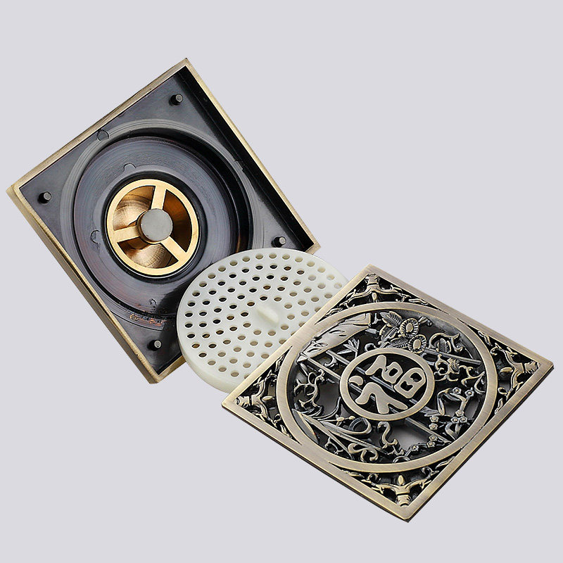 时龙黄铜欧式浮雕仿古防臭芯盖S130104
