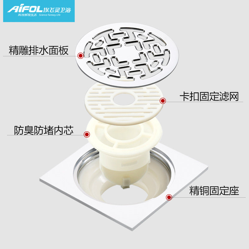四维全铜防臭地漏