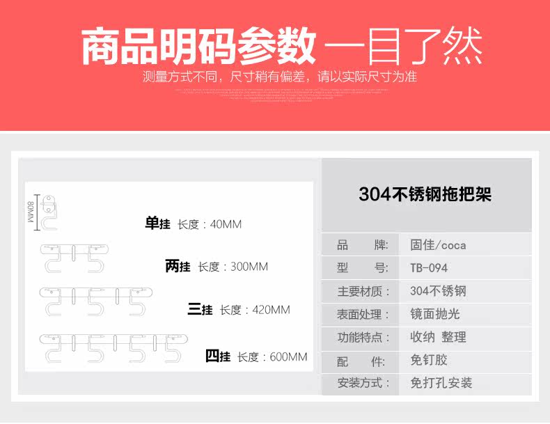 固佳免打孔拖把架TB-094