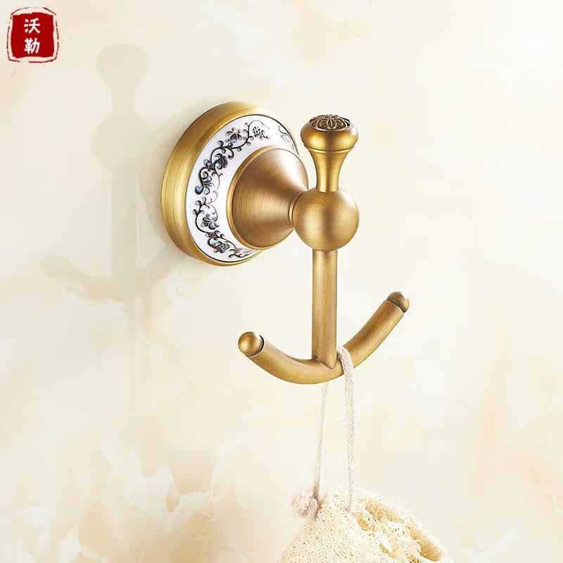 沃勒仿古挂钩全铜挂衣钩青花陶瓷