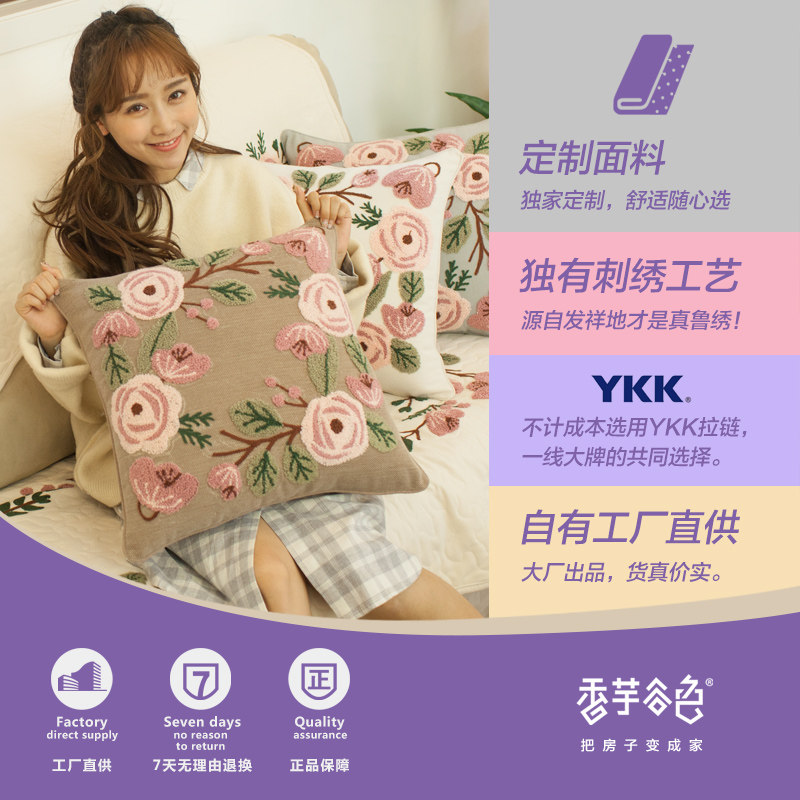 香芋谷色手工刺绣鲁绣抱枕A869