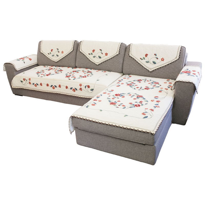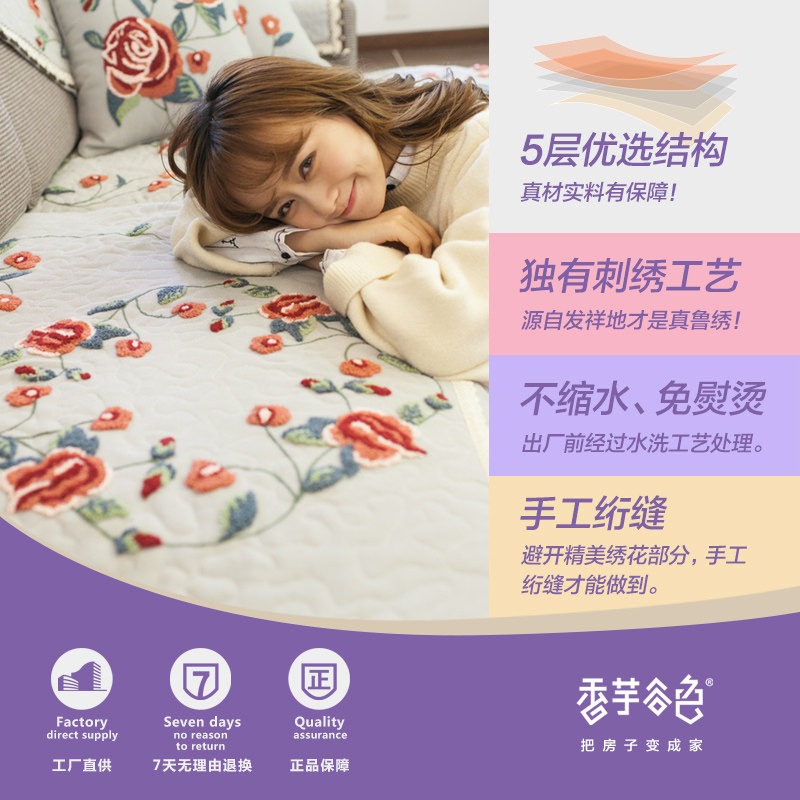 香芋谷色玫瑰花朵刺绣布艺沙发垫A727