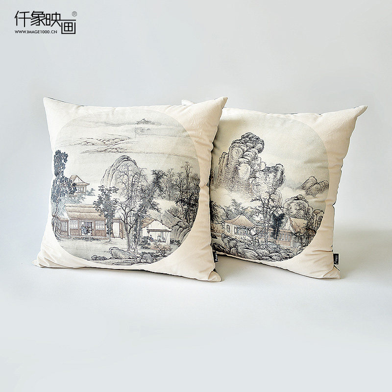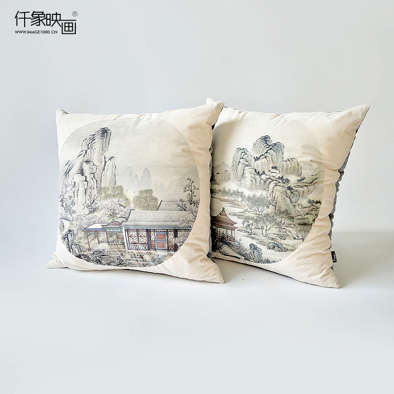 仟象映画山水楼阁抱枕沙发靠垫THB-0389