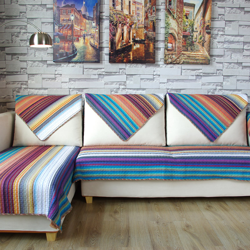 莫耐河色织地中海双面条纹布艺沙发垫2029s