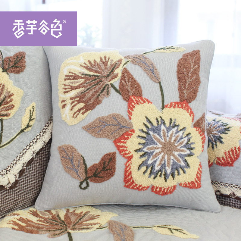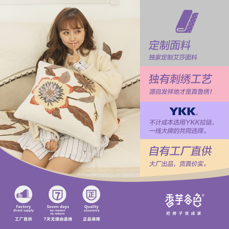 香芋谷色布艺绣花抱枕A717