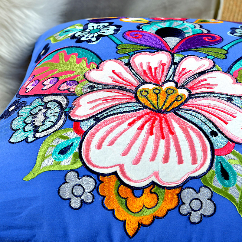 蓝松鼠布艺新古典刺绣靠垫抱枕lss20150905-4