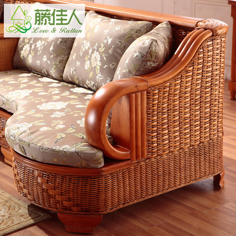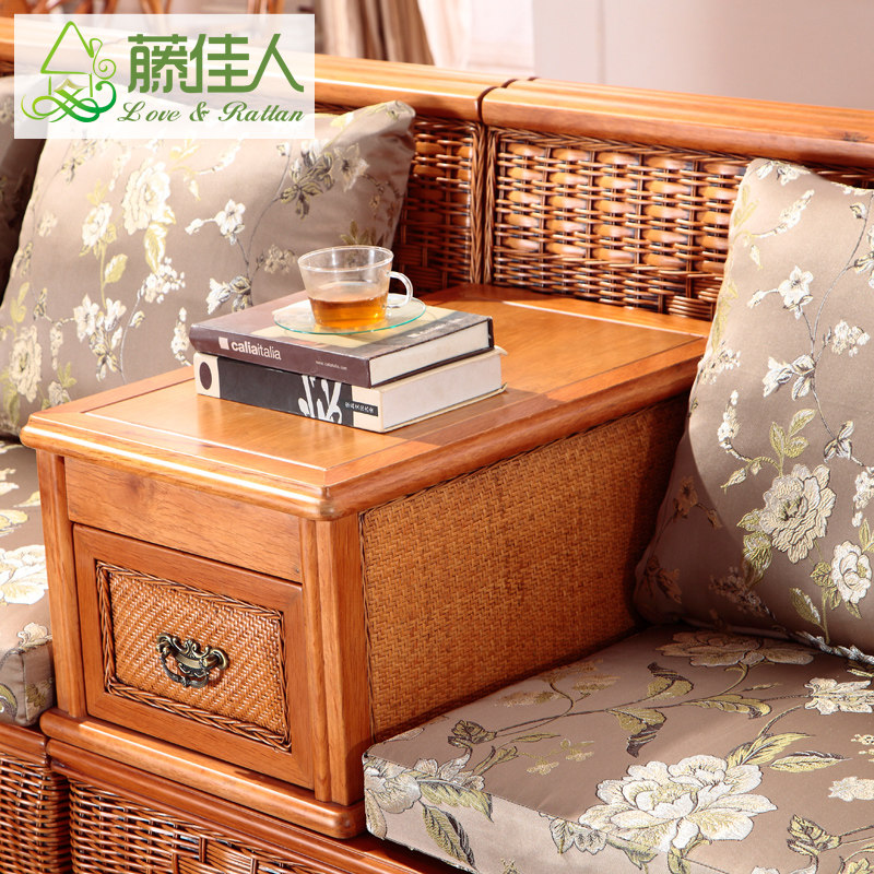 藤佳人实木沙发五件#905