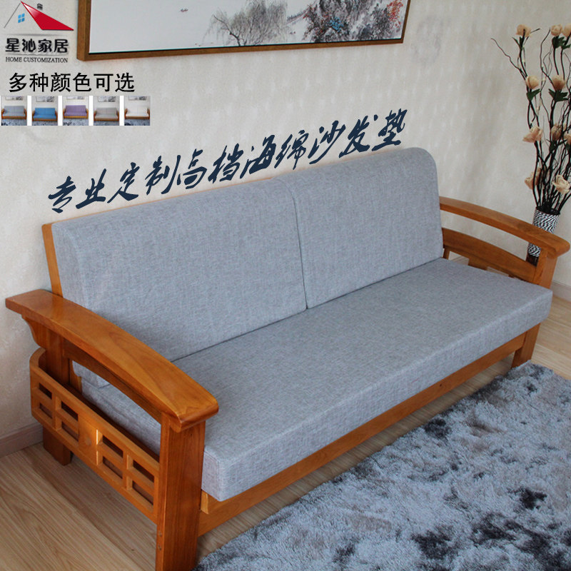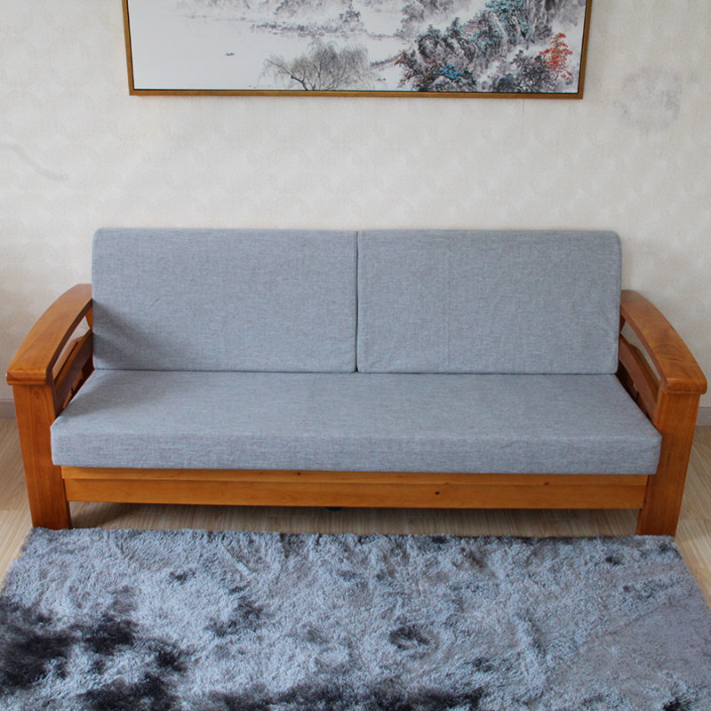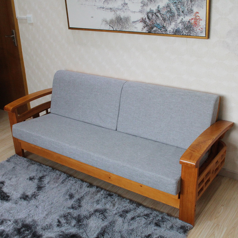 星沁实木沙发海绵床垫混纺麻布-米黄