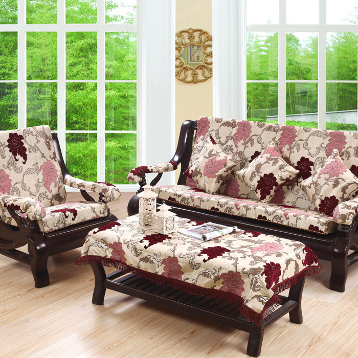 三色福字红木沙发垫