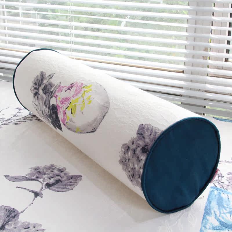 星沁蓝色花朵飘窗垫活性混纺提花麻布