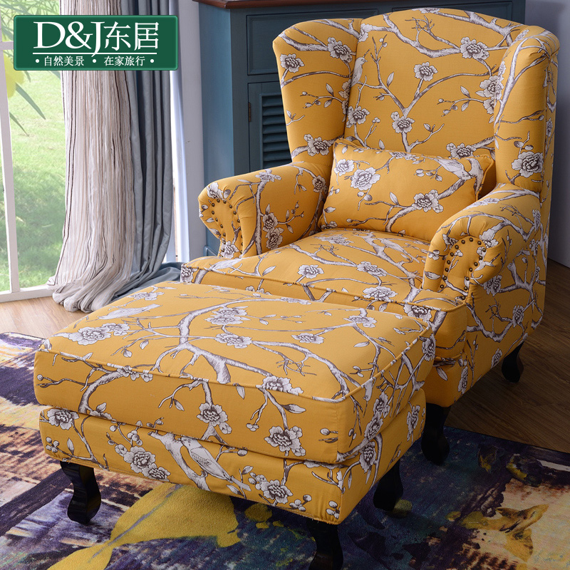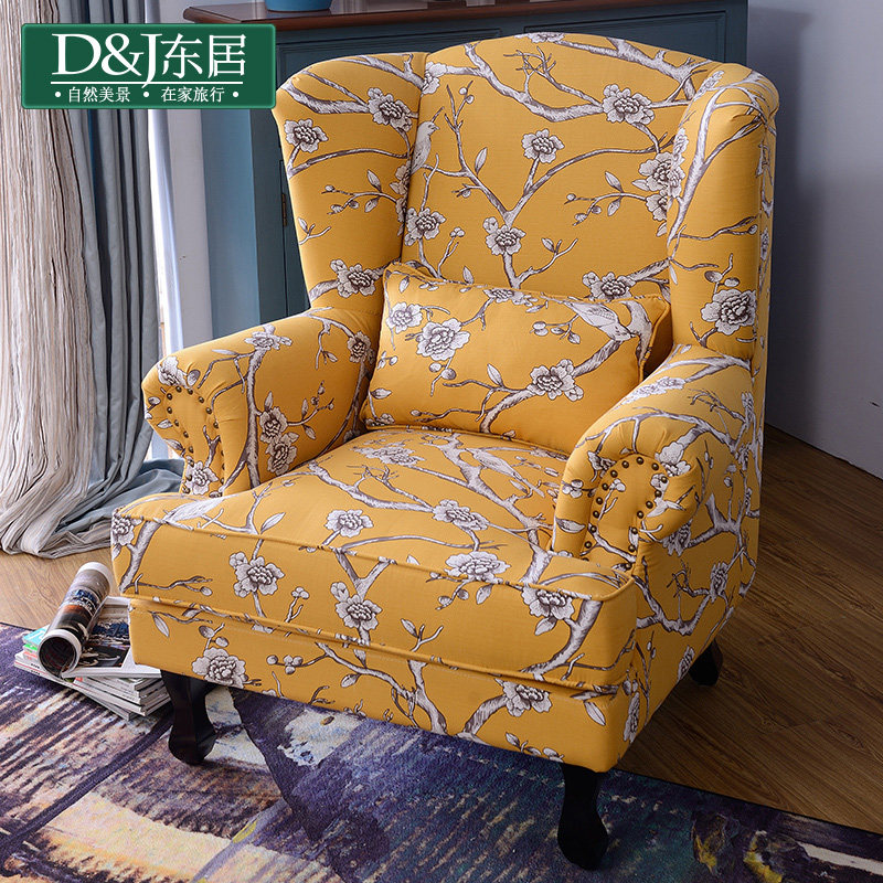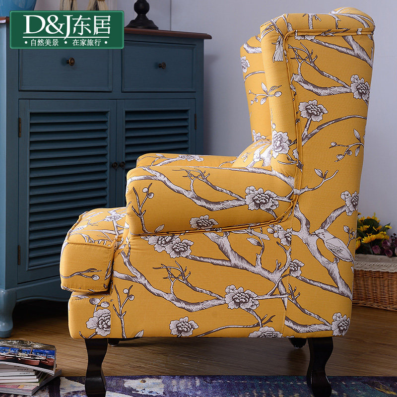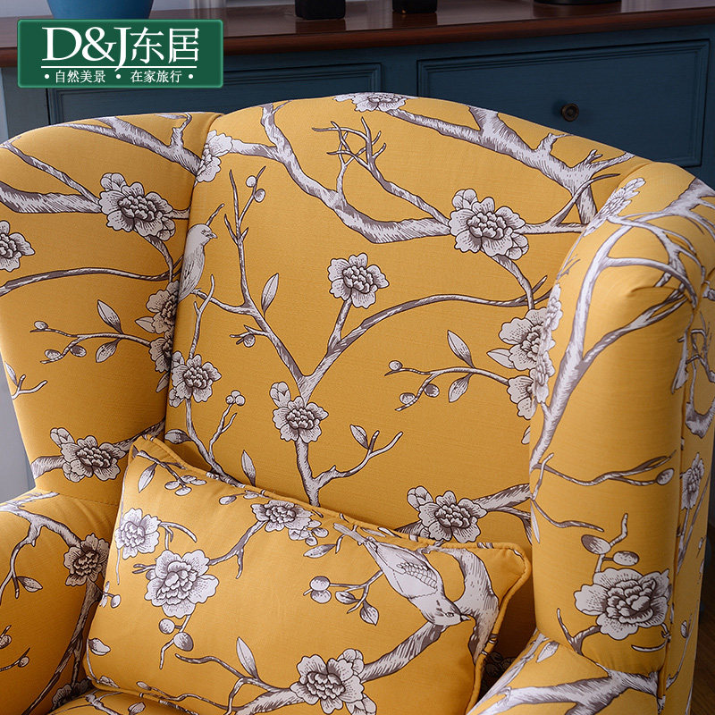 东居老虎椅美式乡村单人沙发3020#E黄底梅花