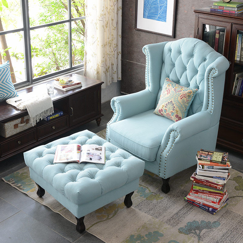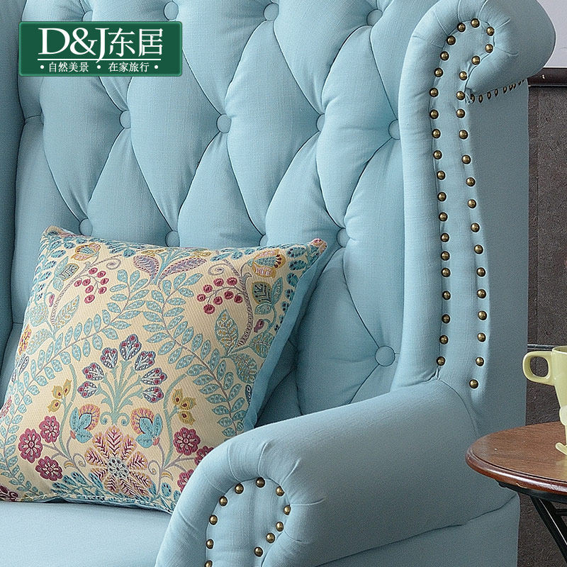 东居美式乡村布艺单人沙发椅J023#D