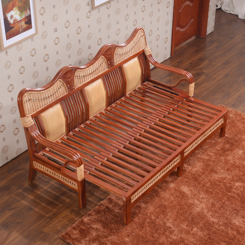 藤编折叠双人沙发床7003