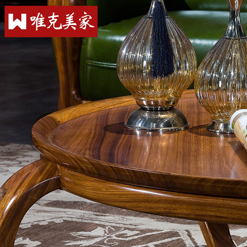 唯克美家高档乌金木实木创意圆形茶几WUM251