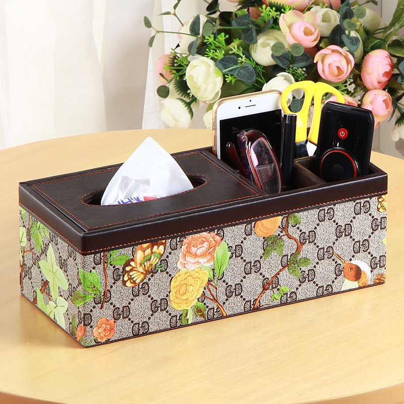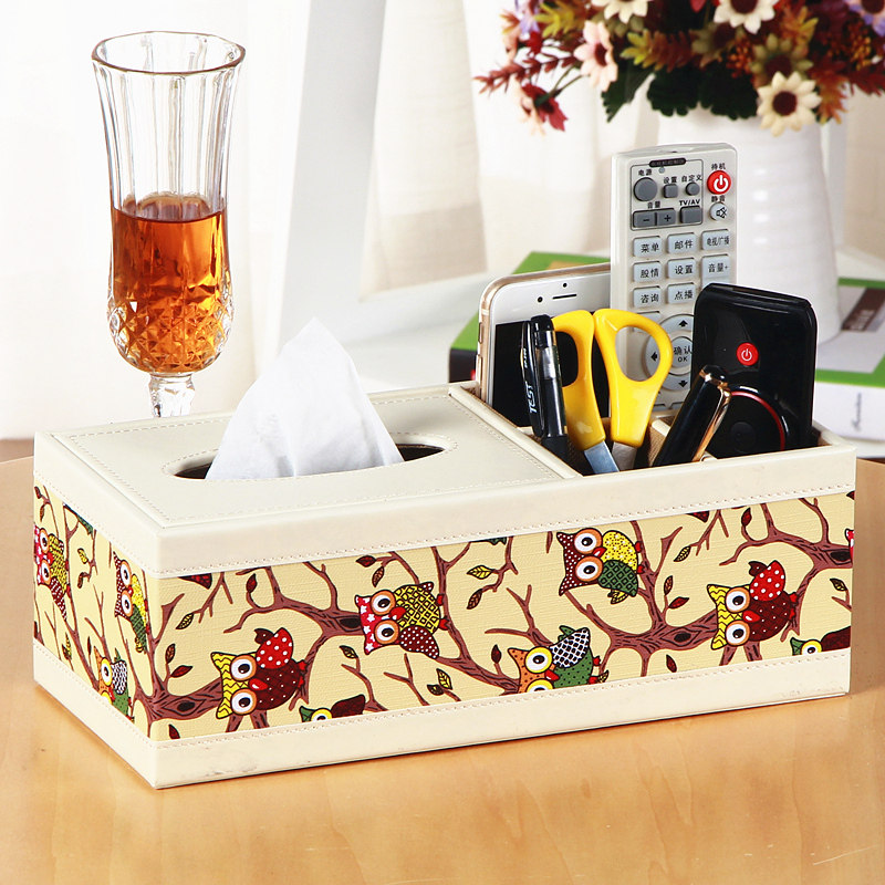 雅皮仕可爱皮多功能纸巾盒正方形奶牛皮收纳盒