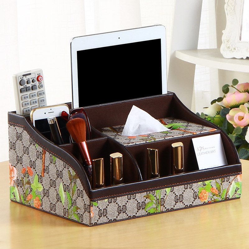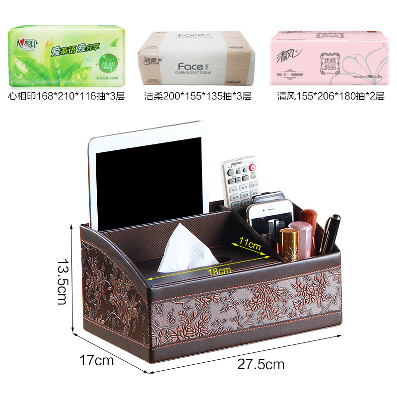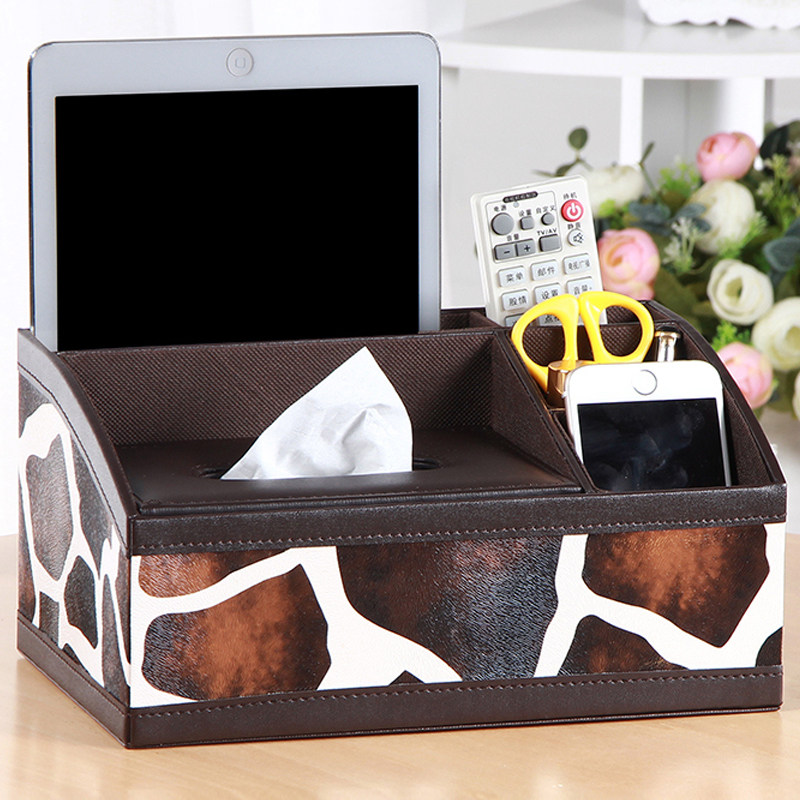 雅皮仕家用多功能纸巾盒奶牛皮纹小号