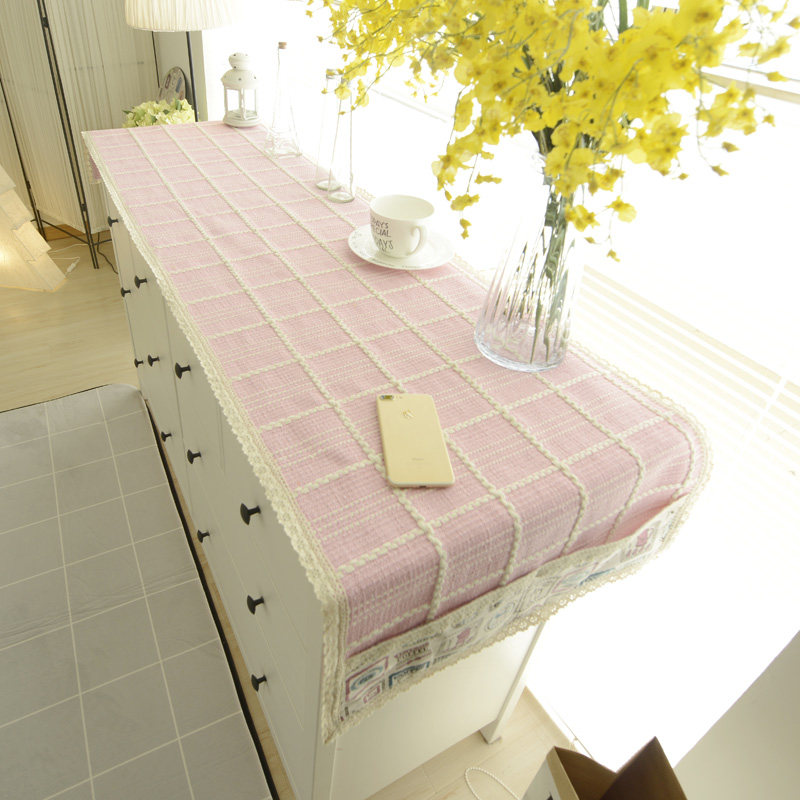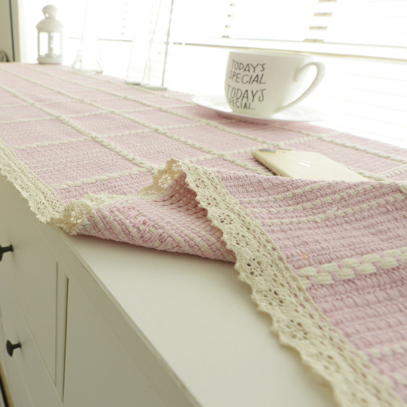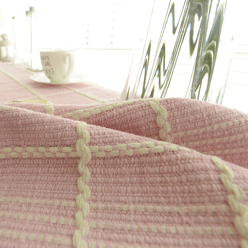 珍珠松美式纯色编织布糖果粉电视盖巾