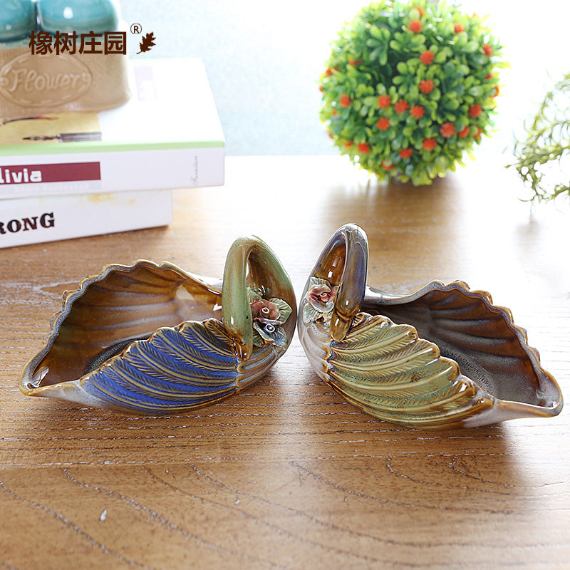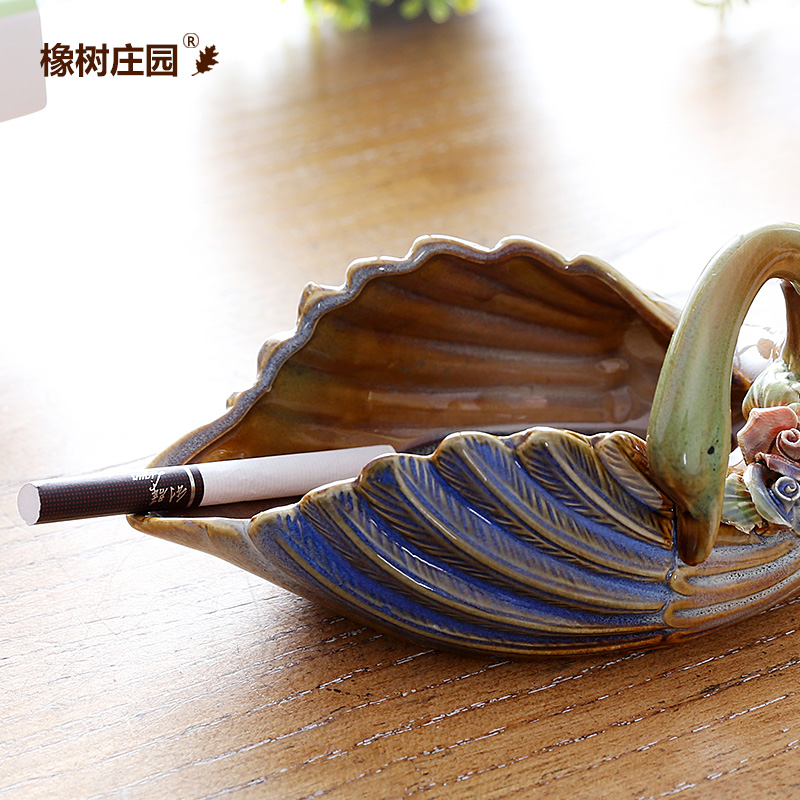 橡树庄园美式乡村创意天鹅陶瓷烟灰缸39