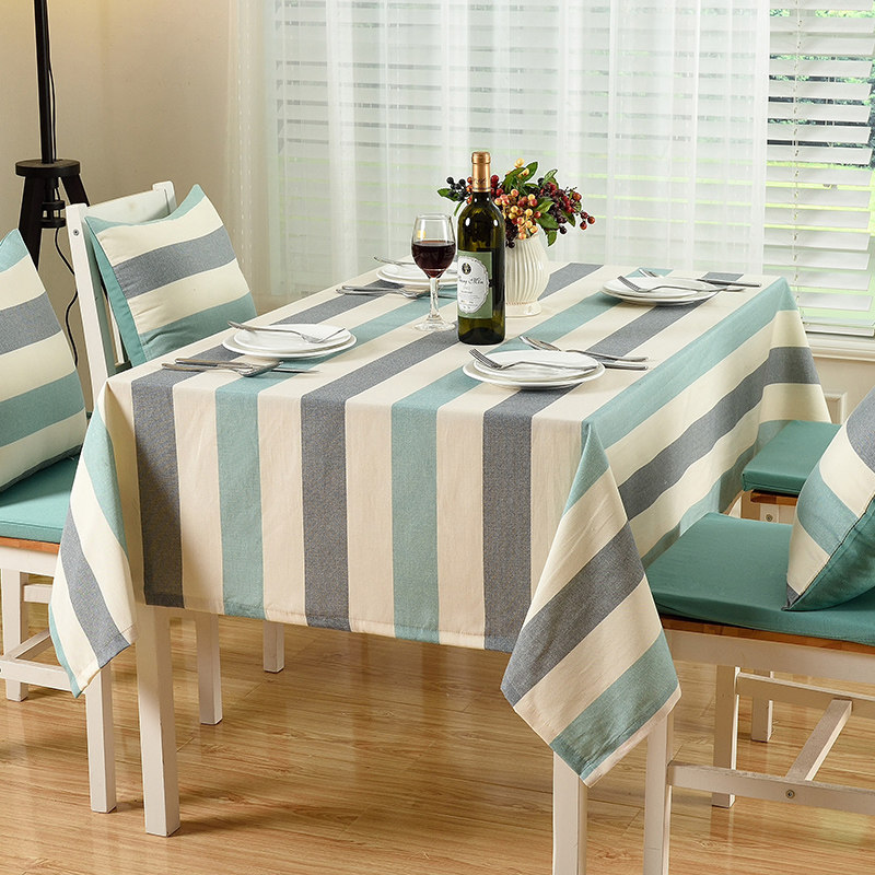 蓝松鼠布艺条纹餐桌布161129-04