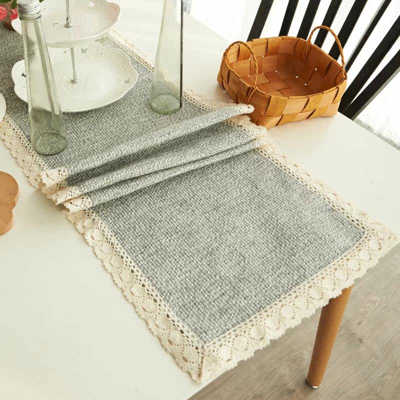 珍珠松欧式纯色编织布艺浅灰桌旗1