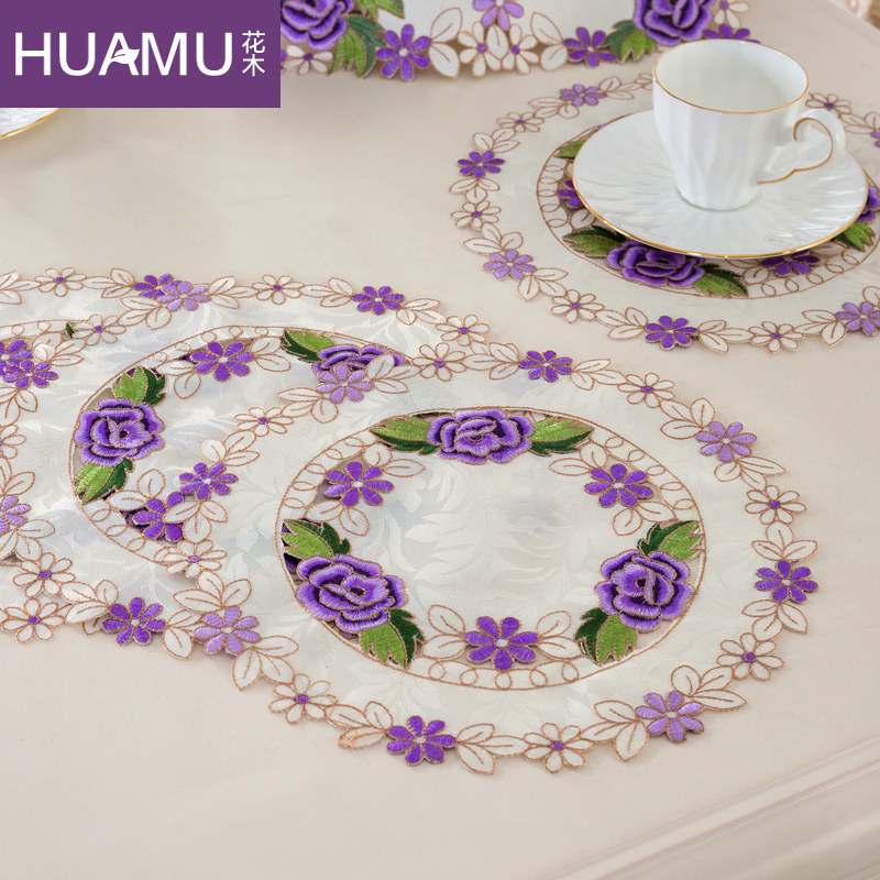 花木绣花桌旗田园布艺床旗英伦玫瑰 紫 桌旗