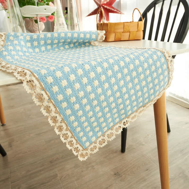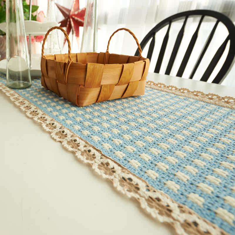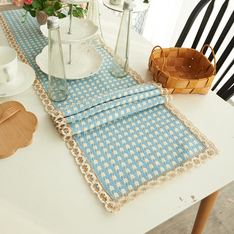 珍珠松美式纯色编织布艺浅回蓝桌旗1