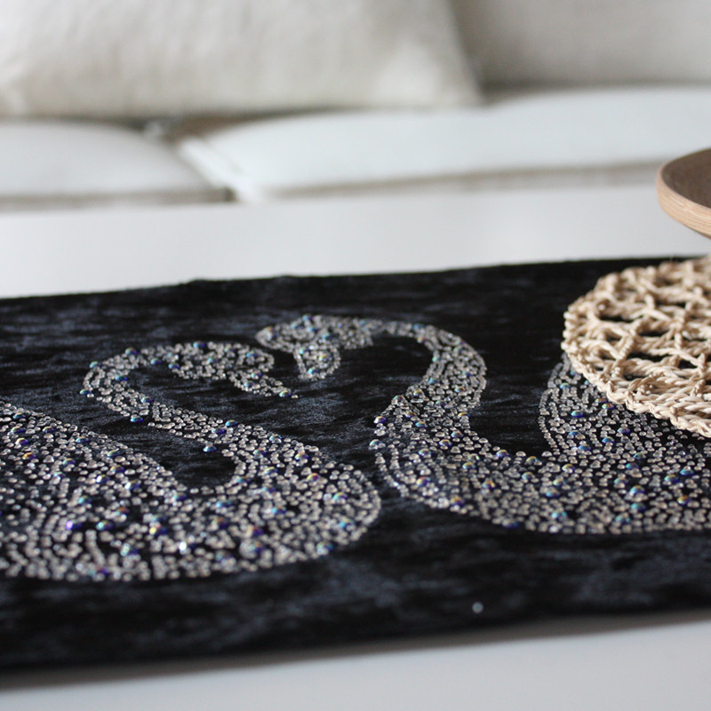 致尚堂水钻天鹅黑白色桌布ZQ-te
