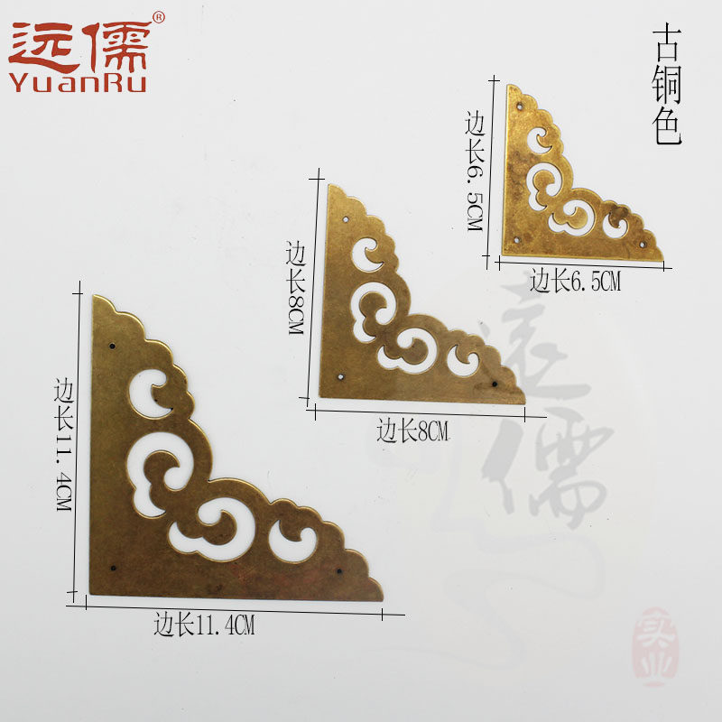 远儒铜雕仿古中式柜门角花樟木箱包角片YRE058 5