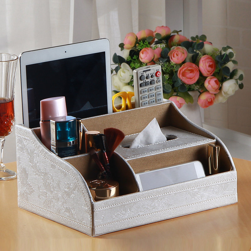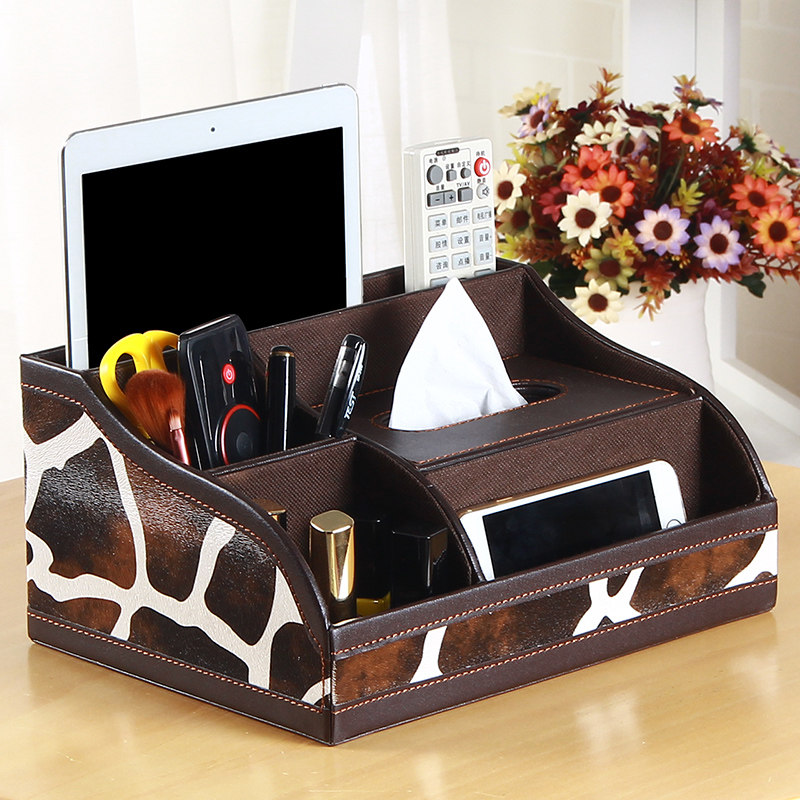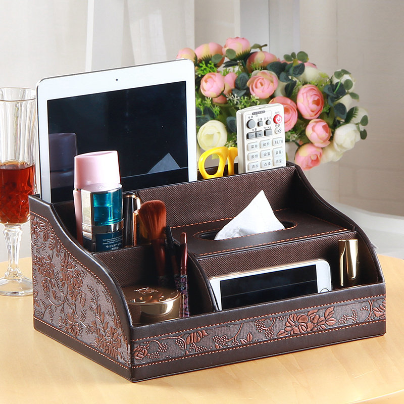 雅皮仕皮革多功能抽屉式桌面盒黑色编织纹小号