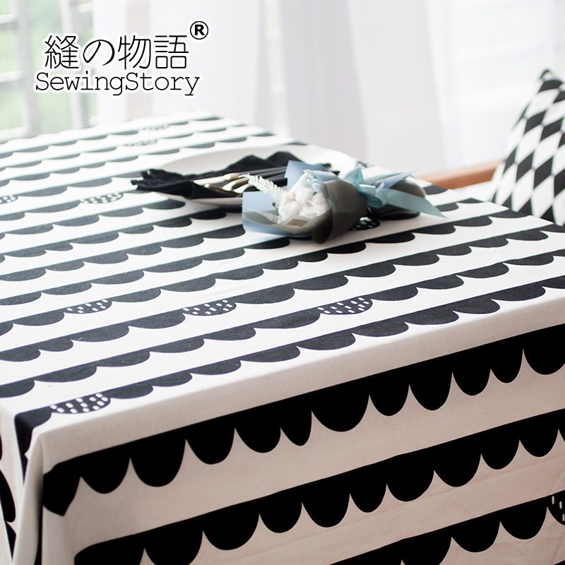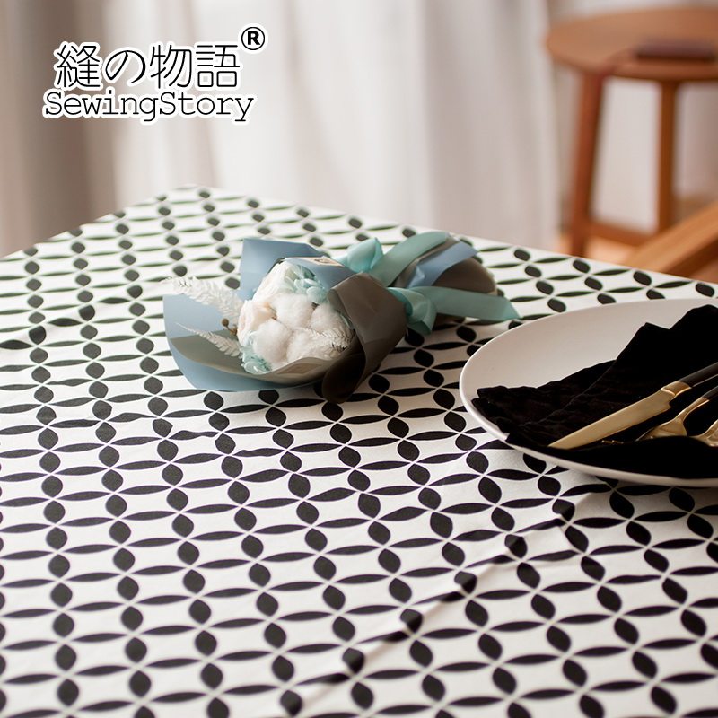 缝物语北欧黑白简约棉麻餐桌布C22TC69