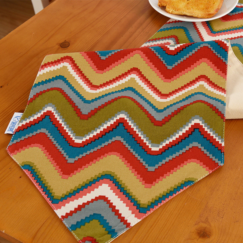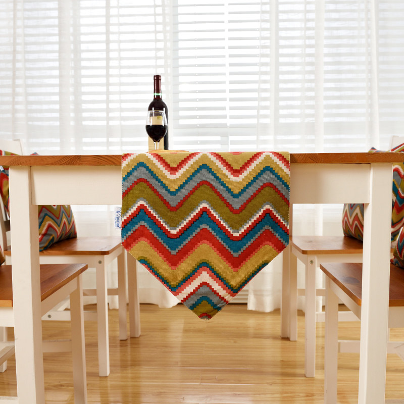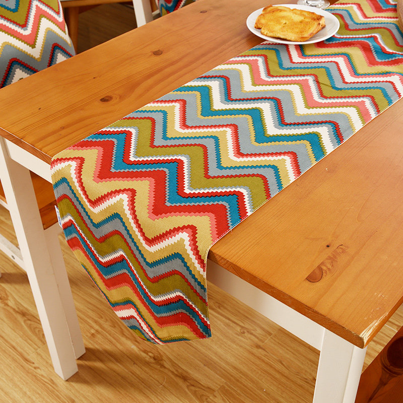 蓝松鼠布艺美式条纹印花桌旗Z65301