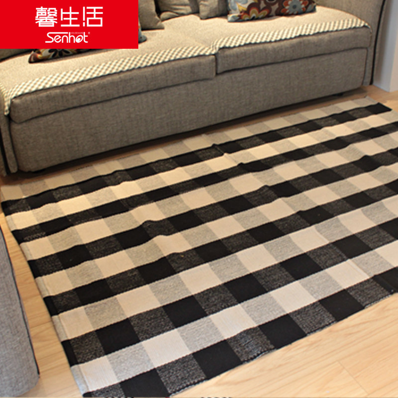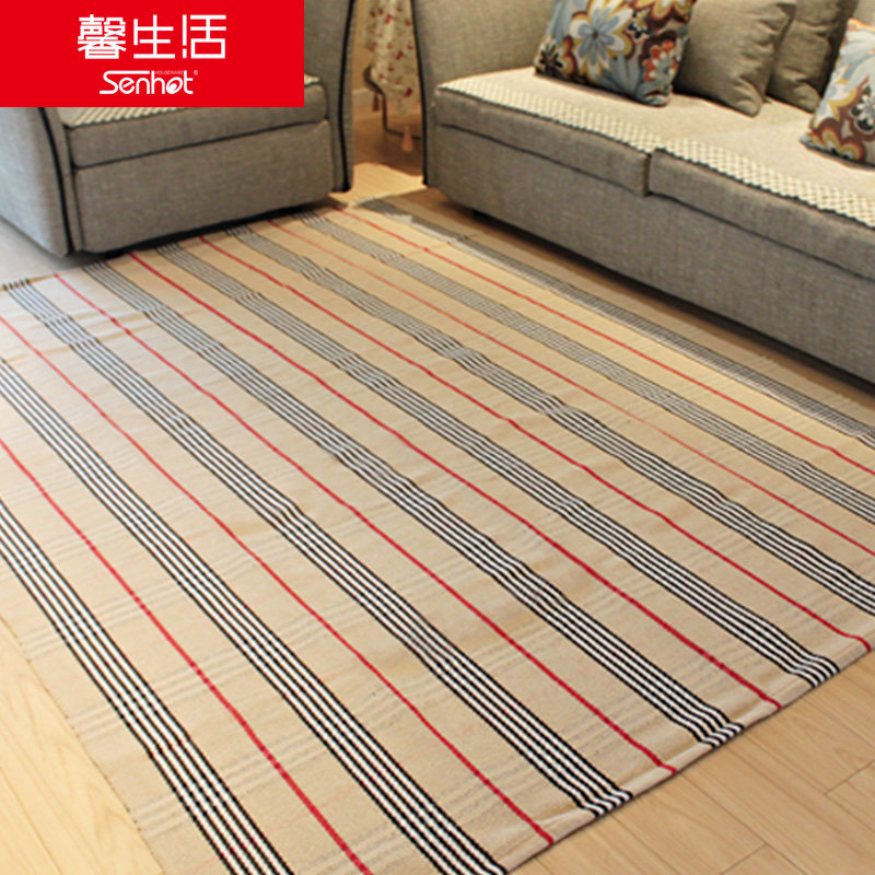 馨生活条纹棉线床前毯