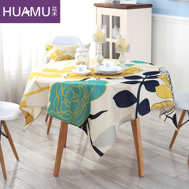 花木棉麻餐桌布花叶影仿麻 餐桌布