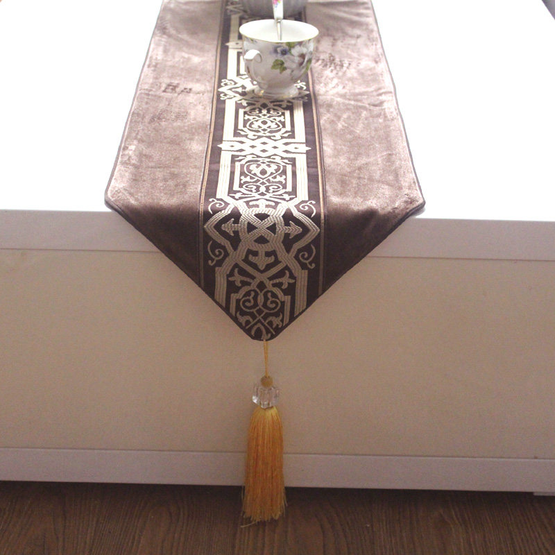 丝茉尔咖啡色中式欧式餐桌桌旗201695G