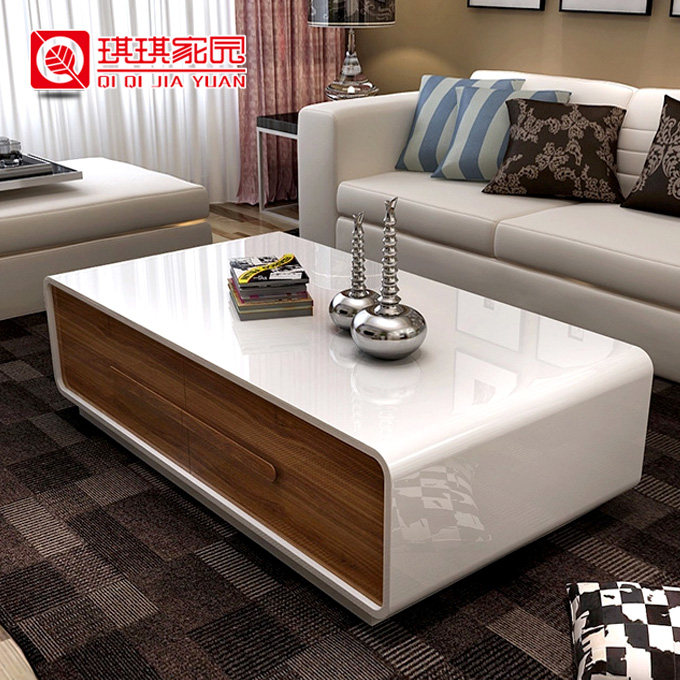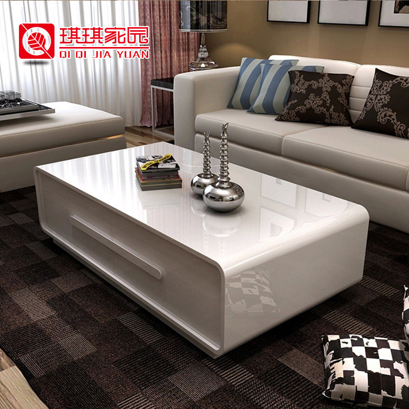 琪琪家园现代简约钢化玻璃储物茶几D04-1