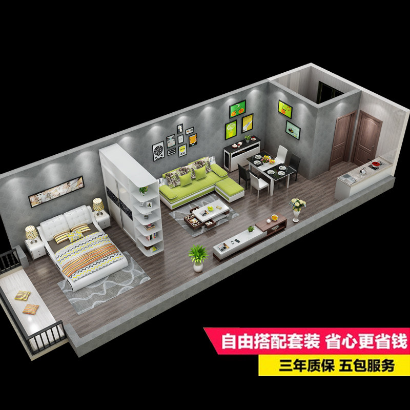 民越成套家具小户型布艺沙发268+AB118