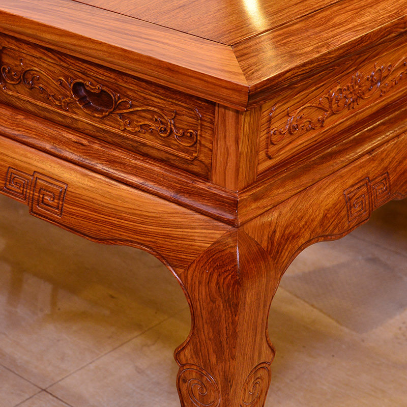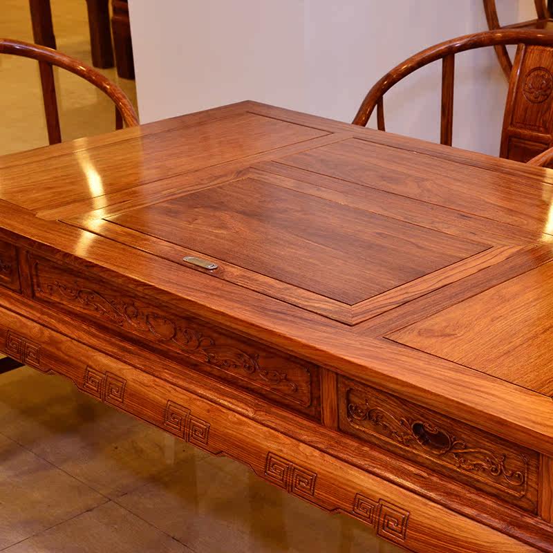 王木匠冈比亚刺猬紫檀茶黄花梨马蹄双用茶桌